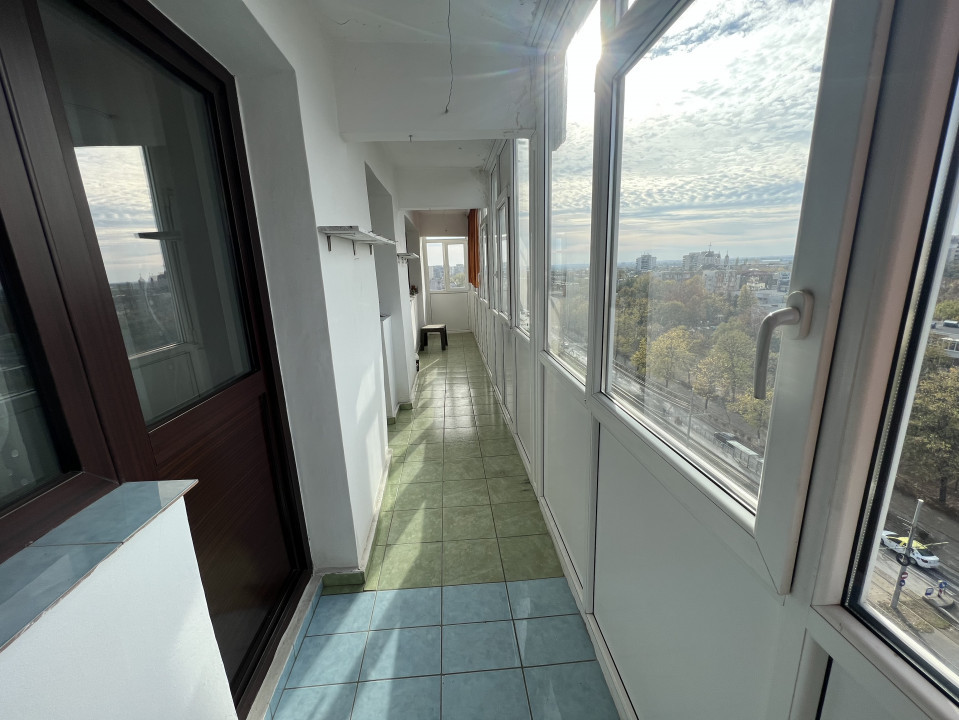 ap 2 cam conf 1 dec, et 9/10, vedere fata, pe colt, orientare Sud- Vest, S utila: 49 mp plus balcon pe toata suprafata apartamentului inchis in termopan de 10,1 mp, geam cu aerisire baie, imbunatatiri: tamplarie PVC cu geam termopan, gresie si faianta in baie si bucatarie, gresie in hol si pe balcon, parchet laminat in sufragerie si in dormitor, izolat exterior, separatie gaze, bloc beton 1977, LIBER, bonus, vizonat Mihaela Tanase