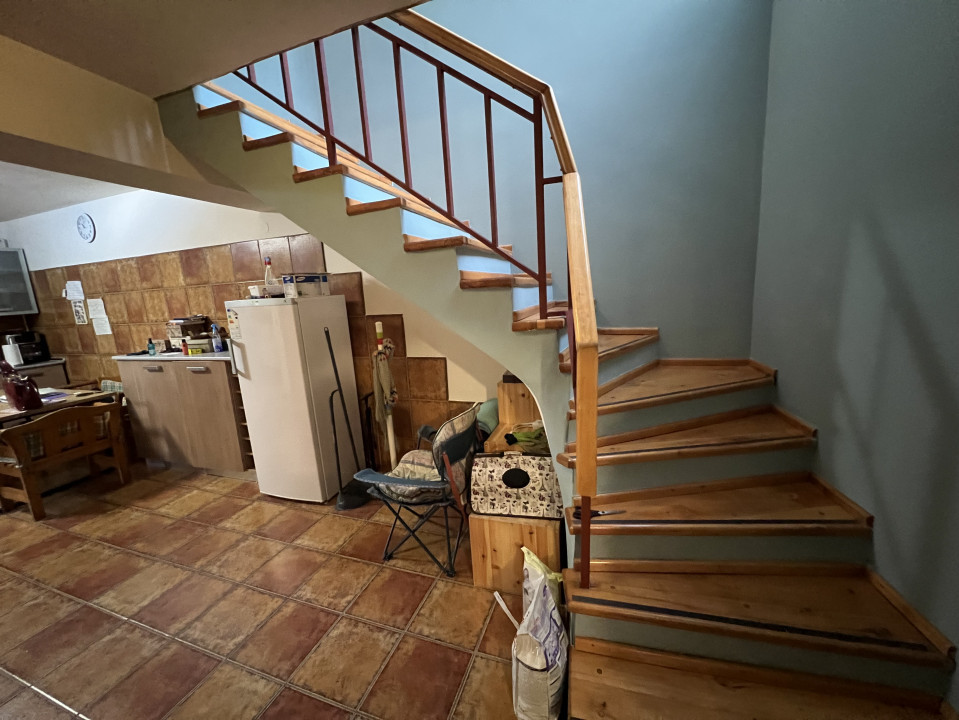 Parter: Sc: 124,41 mp, Su: 95, 49 mp : 2 intrari, 2 holuri, dormitor, sufragerie mare, baie, bucatarie mare, camera tehnica(pentru Centrala termica), scara interioara